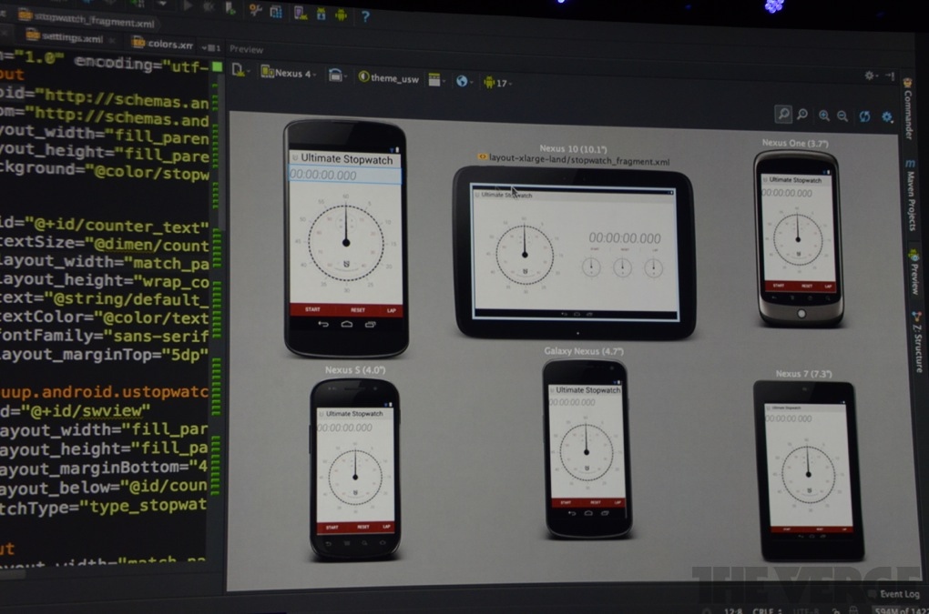 Также интернет-гигант представил специальное приложение под названием Android Studio, которое, судя по всему, должно значительно облегчить процесс создания новых программ и игр. Например, с помощью новой функции разработчики смогут сразу увидеть, как будет выглядеть программа на разных устройствах с разными диагоналями.