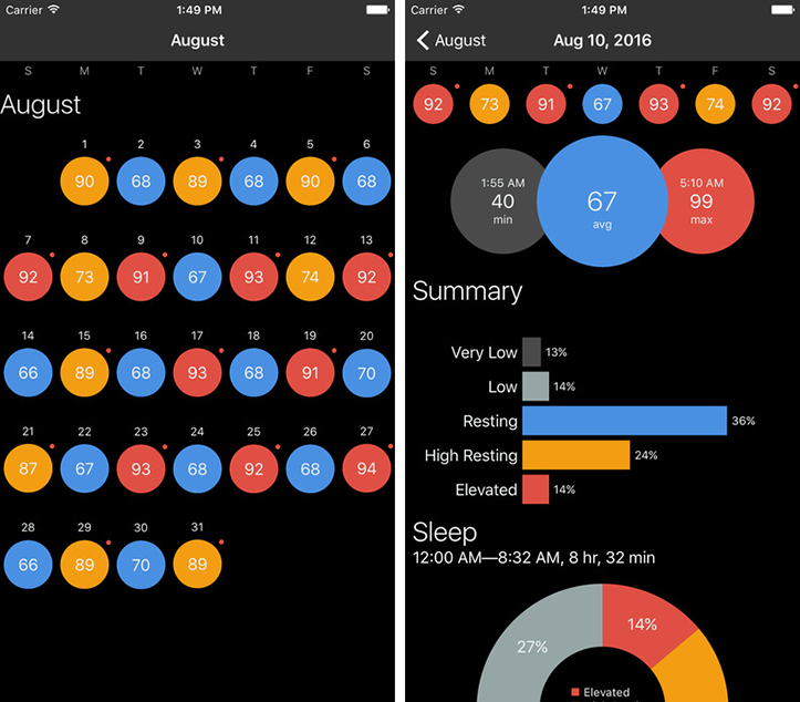 • узнать об изменениях частоты вашего сердцебиения с помощью простых и красивых графиков.