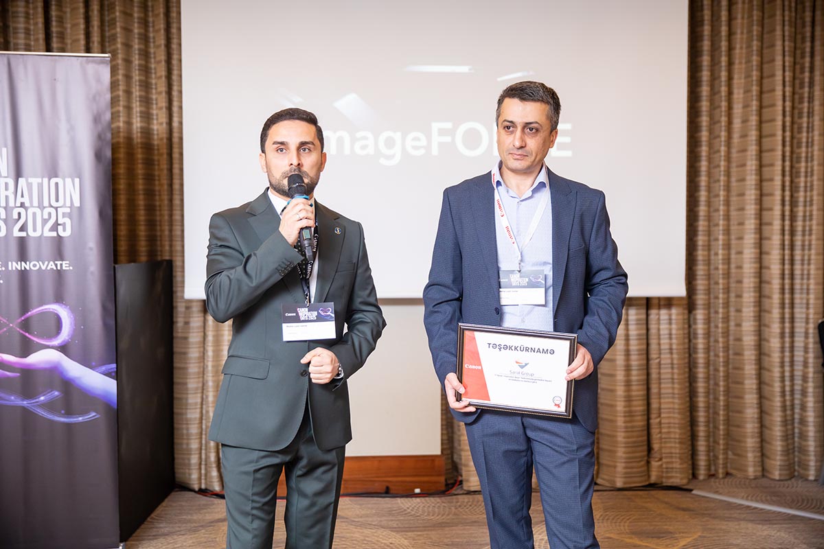 День, наполненный вдохновляющими презентациями, живыми демонстрациями и открытыми дискуссиями о том, как технологии Canon помогают компаниям стать более эффективными, безопасными и готовыми к будущему, продолжился награждением партнеров и заказчиков. Благодарственным письмом был отмечен руководитель департамента IT-сервисов Azersun Holding Вугар Юсиф. Эта компания стала первым в Азербайджане холдингом, внедрившим программное обеспечение UniFLOW в свои процессы. «Помимо экономической выгоды, Azersun Holding смогла повысить эффективность работы и безопасность данных, произвести автоматизацию процессов печати, а также значительно сократить расходы», — отметил представитель Azersun Holding. Также благодарственное письмо за успешные интеграционные работы в рамках проекта Azersun Holding по развертыванию UniFLOW было вручено генеральному менеджеру Saral Group Эмину Гасанлы. Не остались без внимания и компании, оказавшие поддержку в организации Canon Inspiration Days 2025 — Caspian Energy Club и Divi Corporation.