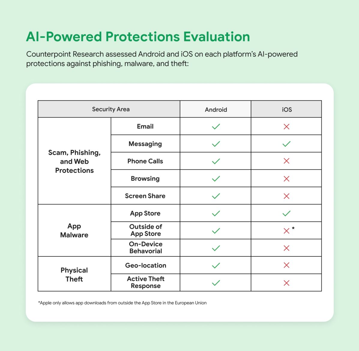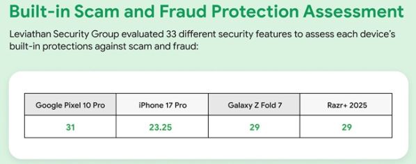 Müstəqil ekspertlər də Google-un nəticələrini təsdiqləyiblər. Leviathan Security Group tərəfindən aparılan araşdırmaya əsasən, xüsusilə Pixel seriyasında olan Android smartfonları fırıldaqçılıq və fişinq hücumlarına qarşı ən yüksək səviyyədə qoruma təmin edir. Üstünlüklər sırasında:
