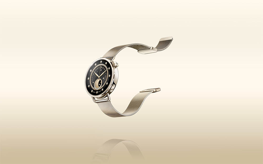 Модель представлена в цветах Black, Mint Green, White и эксклюзивном Sunset Gold с золотистым миланским ремешком и инкрустированным бриллиантом.