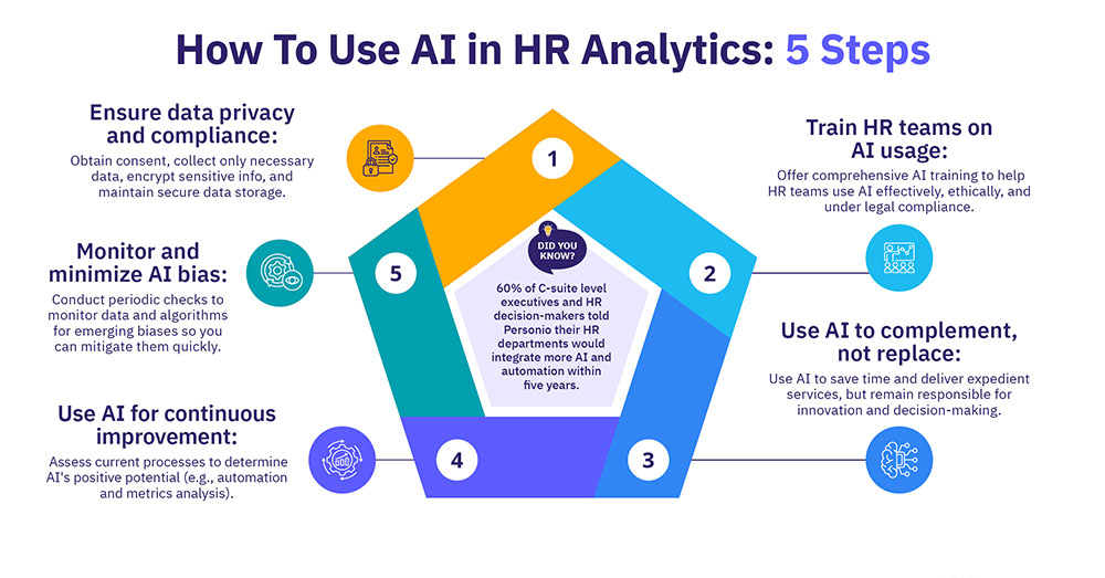 Эффективное планирование персонала крайне важно для отделов кадров, и ИИ играет ключевую роль в оптимизации этого процесса. Анализируя наборы данных, ИИ помогает руководителям отделов кадров прогнозировать кадровые потребности, эффективно распределять ресурсы и принимать обоснованные решения, способствующие долгосрочному росту. Рассмотрите несколько способов использования ИИ в планировании и принятии решений: