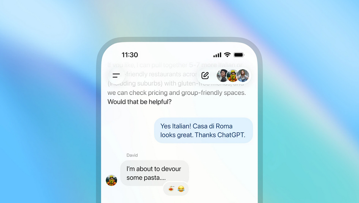 Для работы групповых чатов ChatGPT получил новые «социальные» навыки. Чат-бот старается следить за темой разговора и подключаться только тогда, когда это уместно, а при необходимости его можно вызвать вручную, упомянув по имени. Он также умеет реагировать на сообщения-эмодзи и использовать аватары участников.