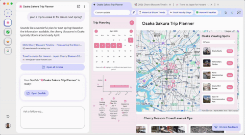GenTabs istifadəçinin açıq pəncərələrini, chat tarixçəsini və cari tapşırığını analiz edir, daha sonra isə həmin tapşırığı yerinə yetirməyə ən uyğun interaktiv veb-tətbiq yaradır. Komandaları Gemini chat vasitəsilə adi insan dili ilə yazmaq kifayətdir.