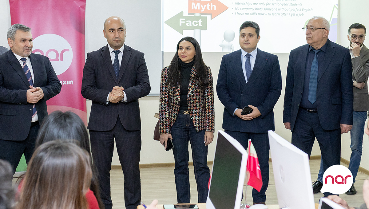 По приглашению ректора университета, доц. Яшара Омарова, руководство Nar посетило Гянджу и встретилось с руководством вуза. В ходе встречи были обсуждены предстоящие инициативы по подготовке профессиональных кадров. В рамках визита генеральный директор Nar, Озгюр Генч, встретился со студентами, участвовавшими в карьерном тренинге, поделился своим профессиональным опытом и практическими советами.