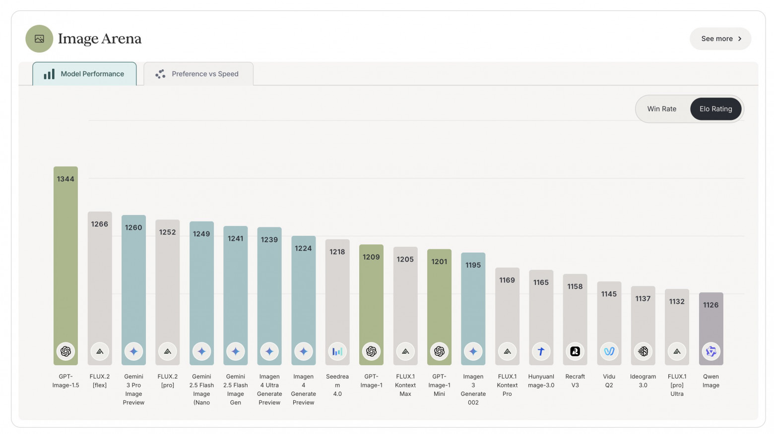 Yeni versiya Image Arena reytinqində birinci yeri tutaraq Flux.2Gemini 3 Pro Image (Nano Banana Pro) modellərini xeyli geridə qoyub. Bu, GPT Image 1.5-in bazardakı mövqeyini açıq şəkildə göstərir.