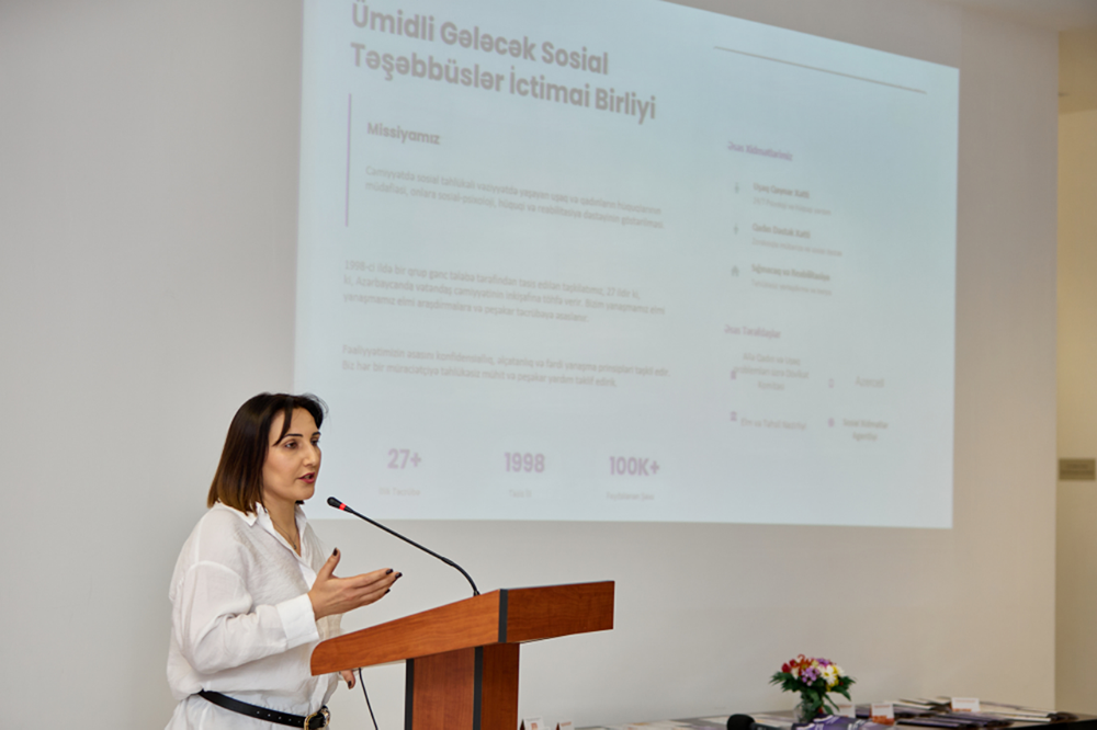 Камала Ашумова, руководитель Общественного объединения «Ümidli Gələcək», в свою очередь представила участникам мероприятия подробную информацию о деятельности «Женской горячей линии».