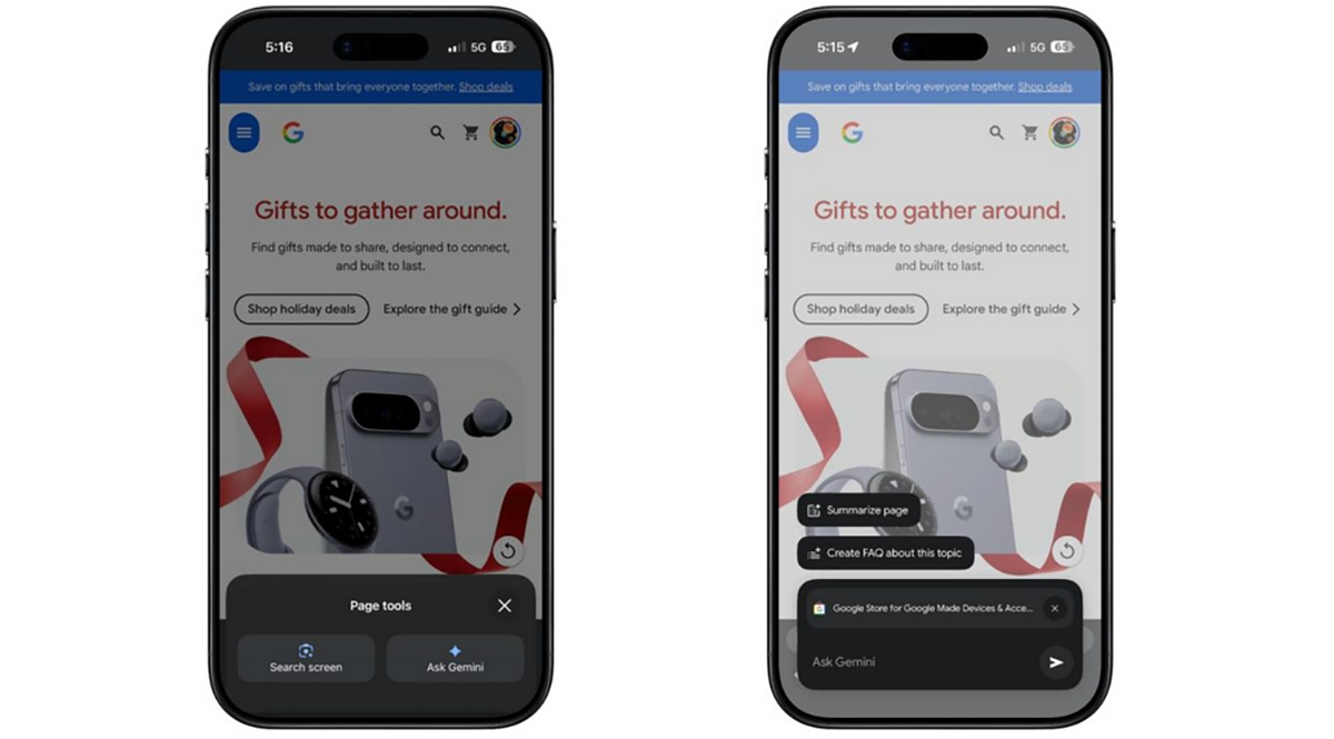 После нажатия на значок будут предложены две опции на выбор: создать сводку с кратким содержанием на основе просматриваемой страницы либо получить подробную инструкцию по изучаемой теме — для этого Gemini обратится к сторонним сайтам. Также можно создавать заметки в стиле ответов на часто задаваемые вопросы по интересующей теме, адаптировать рецепты под индивидуальные диетические предпочтения и многое другое.