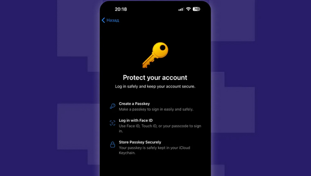 Ключи доступа хранятся в менеджерах паролей, от пользователя не требуется ввод паролей и одноразовых SMS-кодов. Функцию поддерживают менеджеры паролей от Google, Apple, Samsung и других компаний.