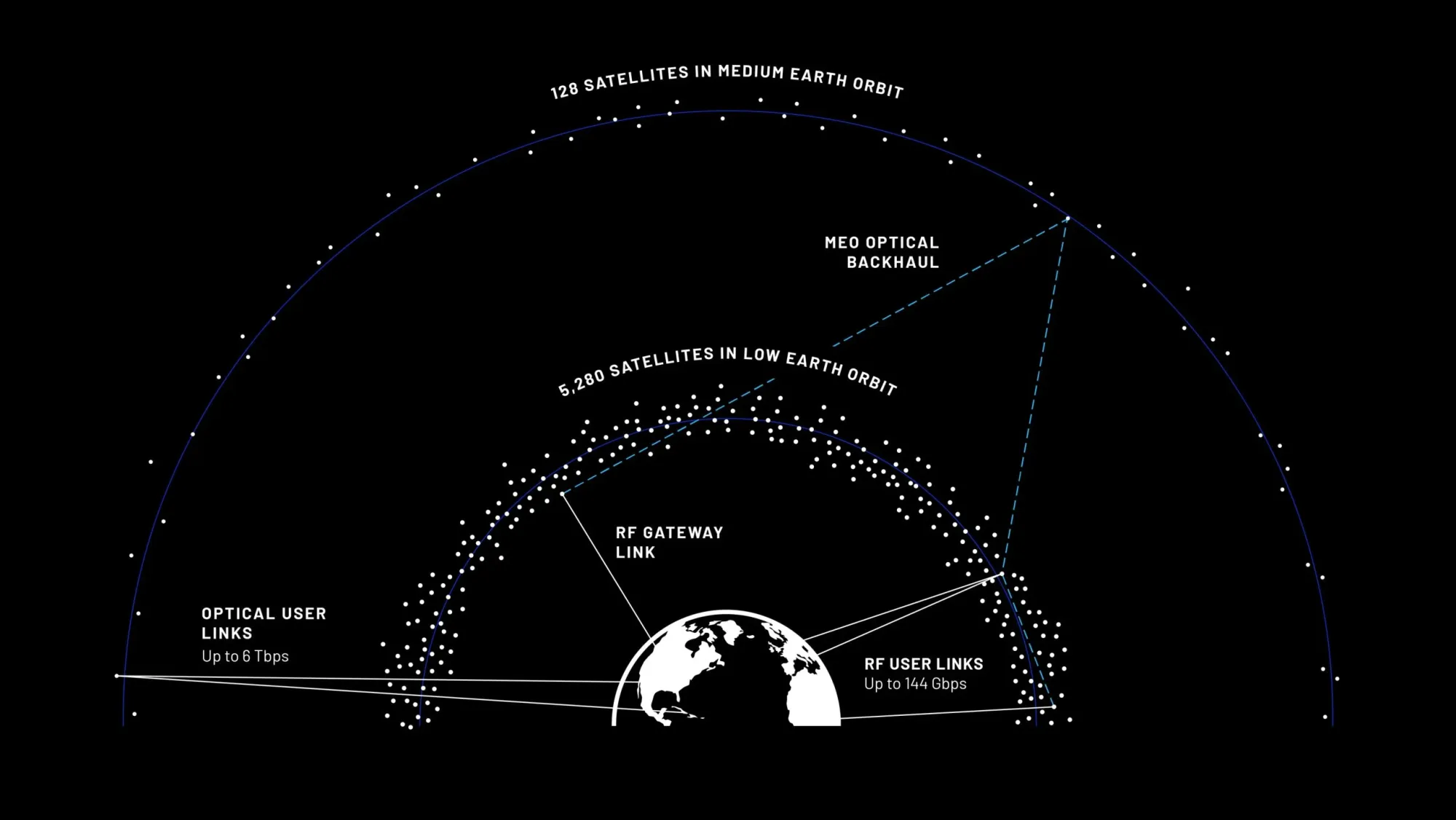 TeraWave-in əsasını çoxoribtalı arxitektura təşkil edir: aşağı Yer orbitində (LEO) 5280 peyk, orta orbitdə (MEO) isə əlavə 128 aparat yerləşdiriləcək. LEO-peyklər radiofrekans kanalları vasitəsilə son istifadəçilər üçün 144 Gbit/s-ə qədər sürət təmin edəcək. MEO-aparatlar isə yerüstü lazer qovşaqları üzərindən 6 Tbit/s-ə qədər ötürmə qabiliyyətinə malik optik əlaqələrə cavabdeh olacaq.