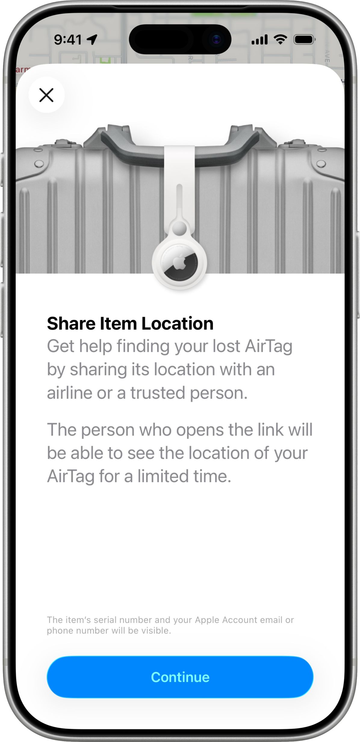 Şirkət “Find My” ekosisteminə və obyektin yerinin paylaşılması funksiyasına da xüsusi diqqət yetirib. İstifadəçilər AirTag-in yerləşdiyi mövqeyi müvəqqəti olaraq üçüncü tərəflərlə, məsələn, aviaşirkətlərlə paylaşa bilirlər. Apple artıq 50-dən çox aviaşirkət ilə əməkdaşlıq edir ki, bu da itən baqajların sayını ciddi şəkildə azaltmağa kömək edir.