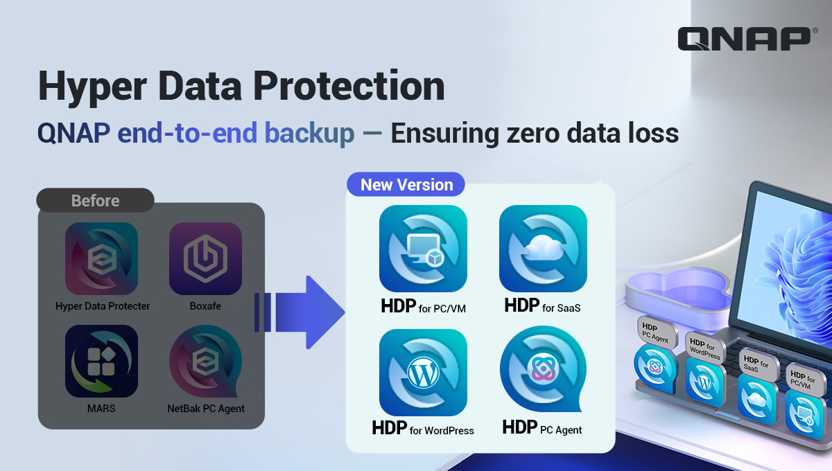 В рамках этого бренда QNAP предлагает полный спектр решений для резервного копирования, охватывающих персональные компьютеры и серверы, виртуальные машины, приложения SaaS и веб-сайты, созданные с помощью такого инструмента, как WordPress. Благодаря этой интеграции все приложения для резервного копирования теперь входят в семейство Hyper Data Protection, что упрощает распознавание продуктов и укрепляет согласованность бренда. Объединив все приложения для резервного копирования в семейство Hyper Data Protection, пользователи могут четко идентифицировать инструменты резервного копирования QNAP и быть уверенными, что HDP обеспечивает всестороннюю и надежную защиту для любых рабочих нагрузок и типов данных.