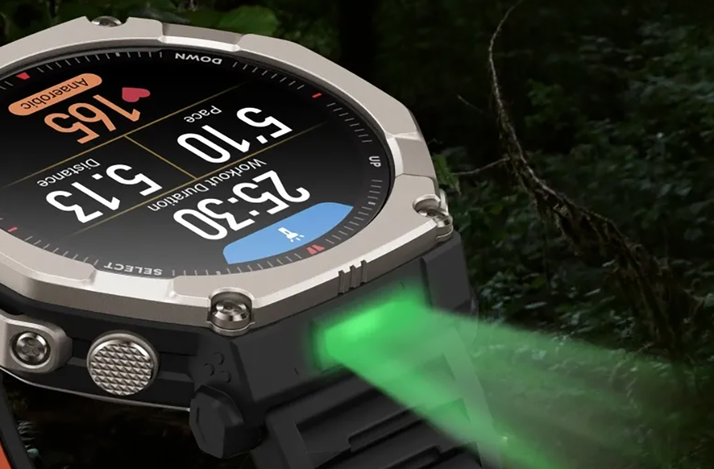 Экран также получил обновление. Amazfit T-Rex Ultra 2 оснащены 1,5-дюймовым AMOLED-дисплеем с сапфировым стеклом и пиковой яркостью до3000 кд/м². Это на 300% выше, чем пиковая яркость 1000 кд/м² у предыдущего поколения. Благодаря этому заметно улучшается читаемость экрана при ярком солнечном свете, в горах и других сложных условиях.
