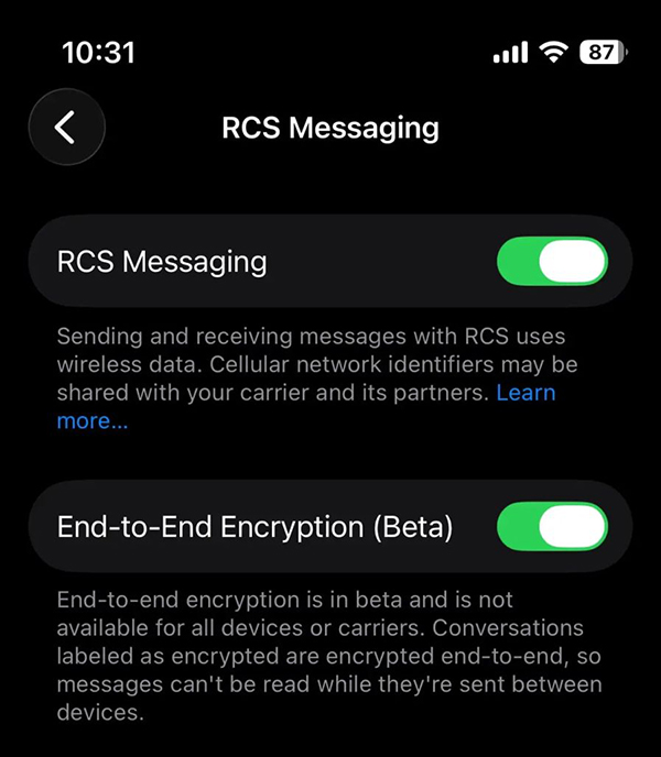 Стабильная версия функции сквозного шифрования сообщений должна появиться в одном из следующих обновлений iOS 26.