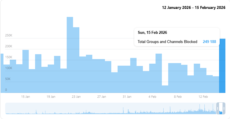 Telegram cəmi 24 saat ərzində platforma qaydalarını pozduğuna görə 230 mindən çox kanal və qrupu bloklayıb. Bu, 2026-cı ilin yanvar ayının sonundan bəri qeydə alınan ən böyük “təmizləmə” dalğası hesab olunur.