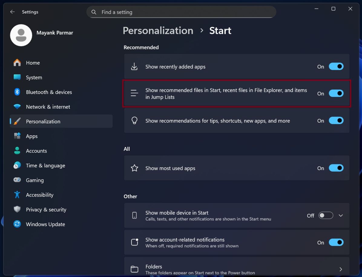 İstifadəçilər istəsələr tövsiyələr lentini deaktiv edə bilərlər (“Ayarlar / Fərdiləşdirmə / Start”). Lakin bu zaman “File Explorer”də son ünvanlar və keçidlərin siyahısı da gizlədiləcək.