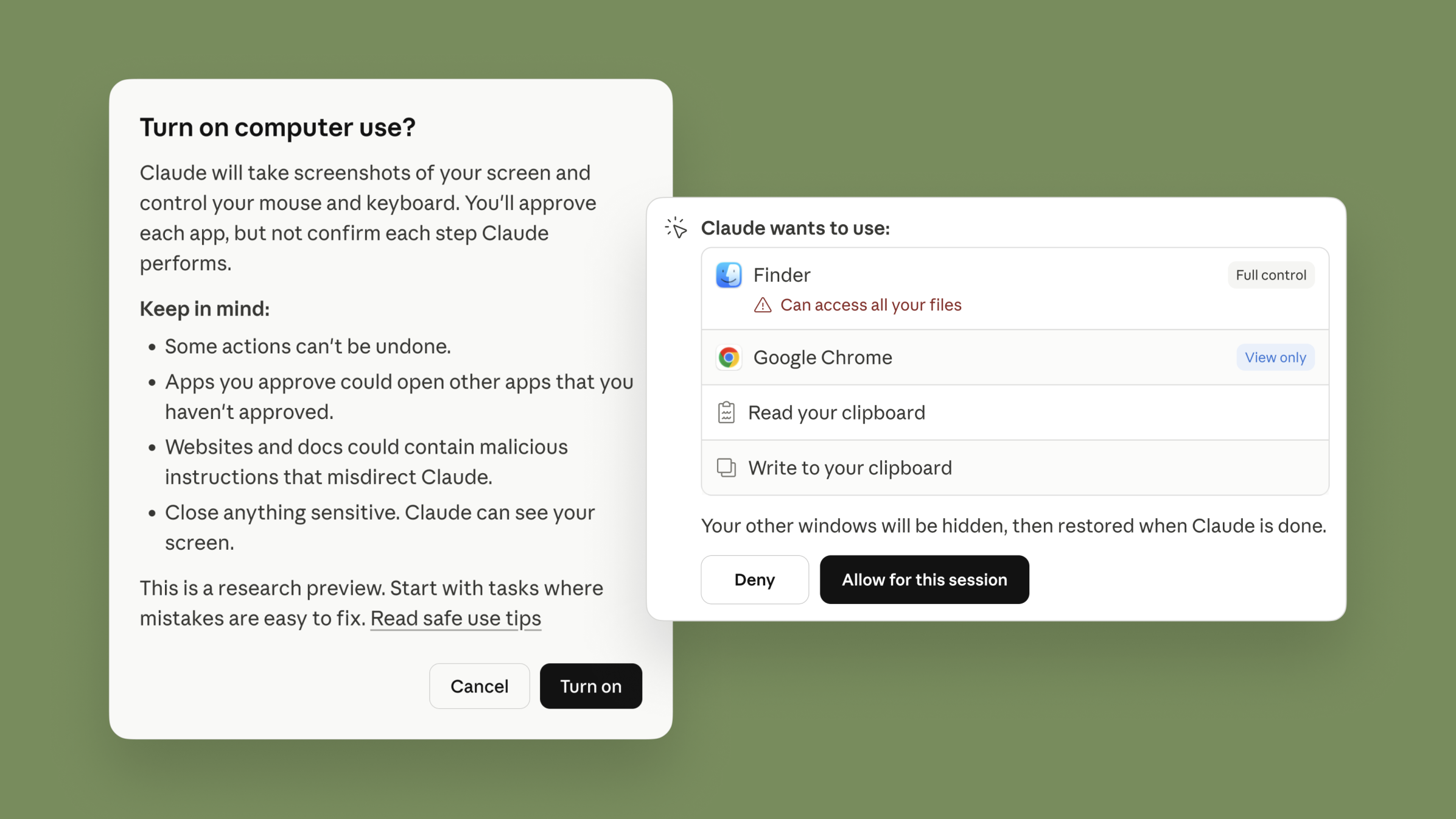 Claude lazım olan servislərə birbaşa çıxış əldə edə bilmədikdə, sadəcə kompüter interfeysindən istifadə edir: brauzeri açır, faylları tapır, proqramları işə salır və tətbiqlər daxilində əməliyyatlar həyata keçirir.