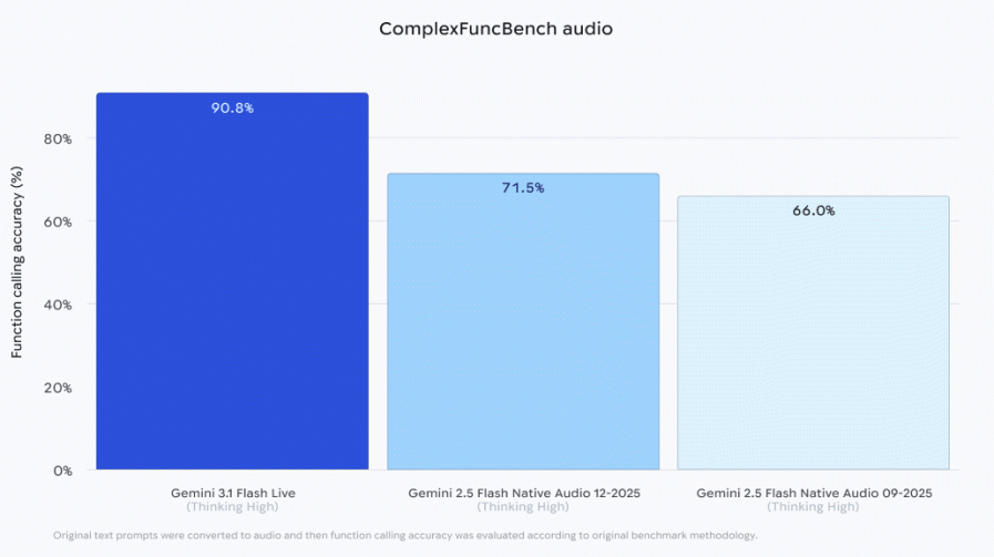 Gemini 3.1 Flash Live müxtəlif testlərdə də gücünü göstərib. O, ComplexFuncBench Audio və Big Bench Audio benchmarklarında yüksək nəticələr əldə edib, hətta sonuncuda 1000 suala səsli cavab verərək lider olub. Lakin Scale AI Audio MultiChallenge testində nəticə o qədər də yüksək olmayıb — model 36,1% toplayıb, halbuki digər səs botlarının orta göstəricisi 50% təşkil edir. Bu test əsasən səsli dialoq zamanı kəsintiləri və səs-küyü idarə etmə bacarığını yoxlayır.
