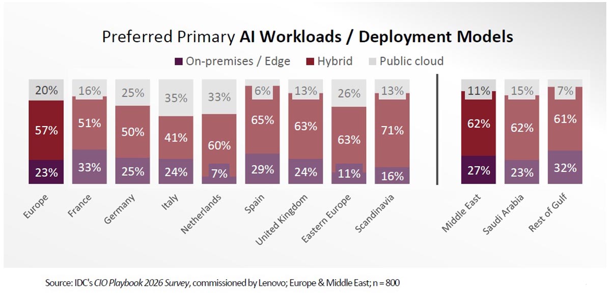 По всему региону доминируют гибридные модели развертывания, поскольку организации стремятся сбалансировать инновации с требованиями к суверенитету данных и операционному контролю, а интерес к агентному ИИ стремительно растёт. Это свидетельствует о более широком переходе от экспериментов к более автономным, готовым к промышленной эксплуатации сценариям использования ИИ, несмотря на сохраняющиеся различия в уровне готовности между рынками.