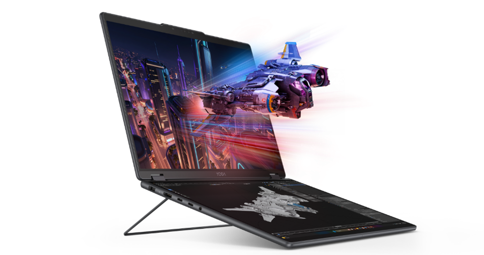 Прототип Yoga Book Pro 3D был создан в ответ на эти тенденции и для того, чтобы дать возможность создателям цифрового контента работать с трёхмерными объектами без дополнительного оборудования. Встроенный 3D‑дисплей без очков позволяет естественно воспринимать глубину, форму и пространственные композиции на экране. Устройство оснащено двумя дисплеями Lenovo PureSight Pro Tandem OLED, которые обеспечивают поддержку сложных интерфейсов и детализированных рабочих процессов, связанных с созданием 3D‑контента.