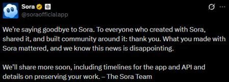 OpenAI gözlənilmədən Sora layihəsinin bağlanacağını elan edib. 2024-cü ildə təqdim olunan və qısa müddətdə populyarlıq qazanan video generasiya xidməti artıq fəaliyyətini dayandırmağa hazırlaşır.