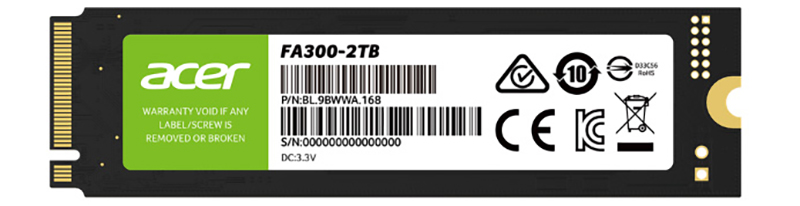 В основе Acer FA300 используется память 3D TLC и контроллер без DRAM-буфера, производитель не уточняет, какой именно, вероятно, Phison E31T или Silicon Motion SM2504XT. Оптимизированная архитектура снижает тепловыделение и поддерживает стабильную энергоэффективность.
